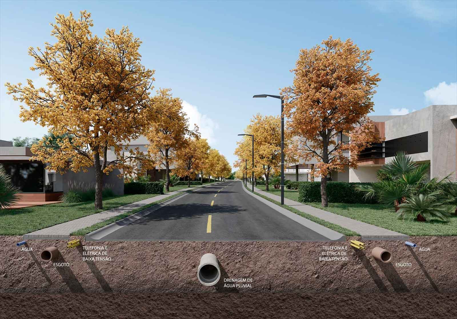 Loteamento de alto padrão cercado por áreas verdes, proporcionando tranquilidade, segurança e qualidade de vida em um ambiente exclusivo.